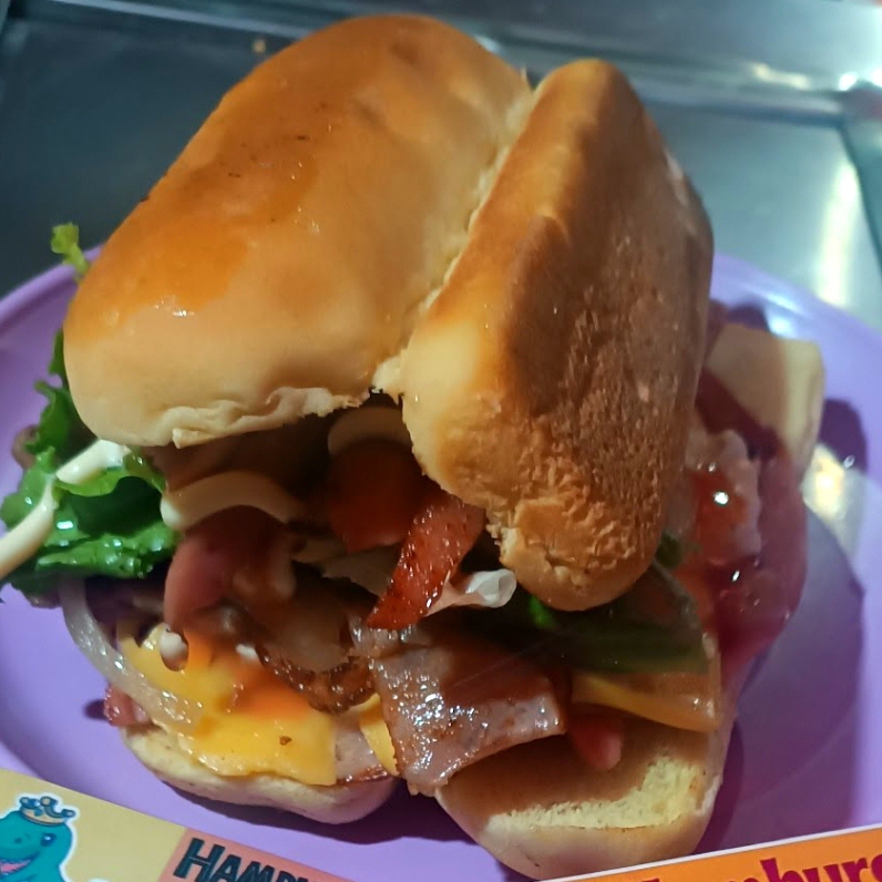 Carne, jamón, queso amarillo, quesillo, piña, bañada en salsa BBQ.