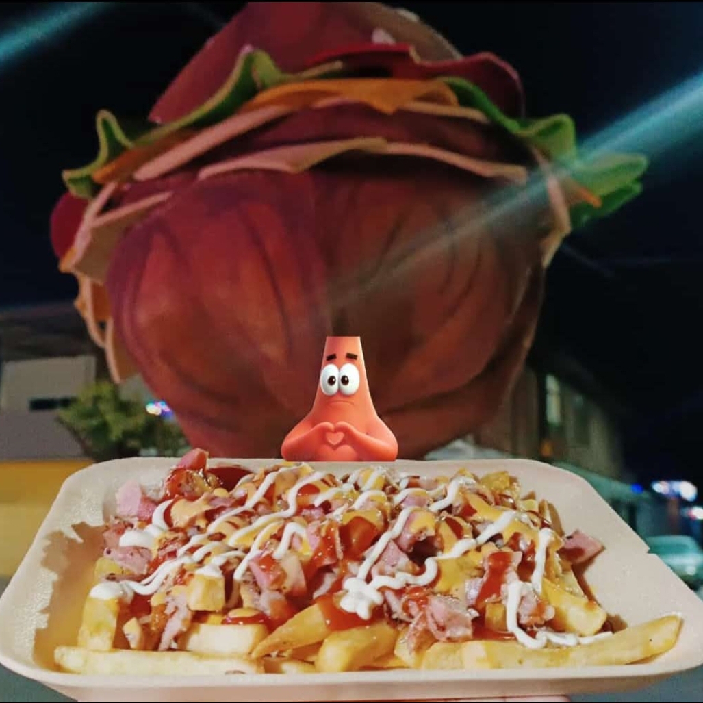 Carne, quesillo, queso amarillo, jamón, tocino bañado en salsa BBQ chipotle.