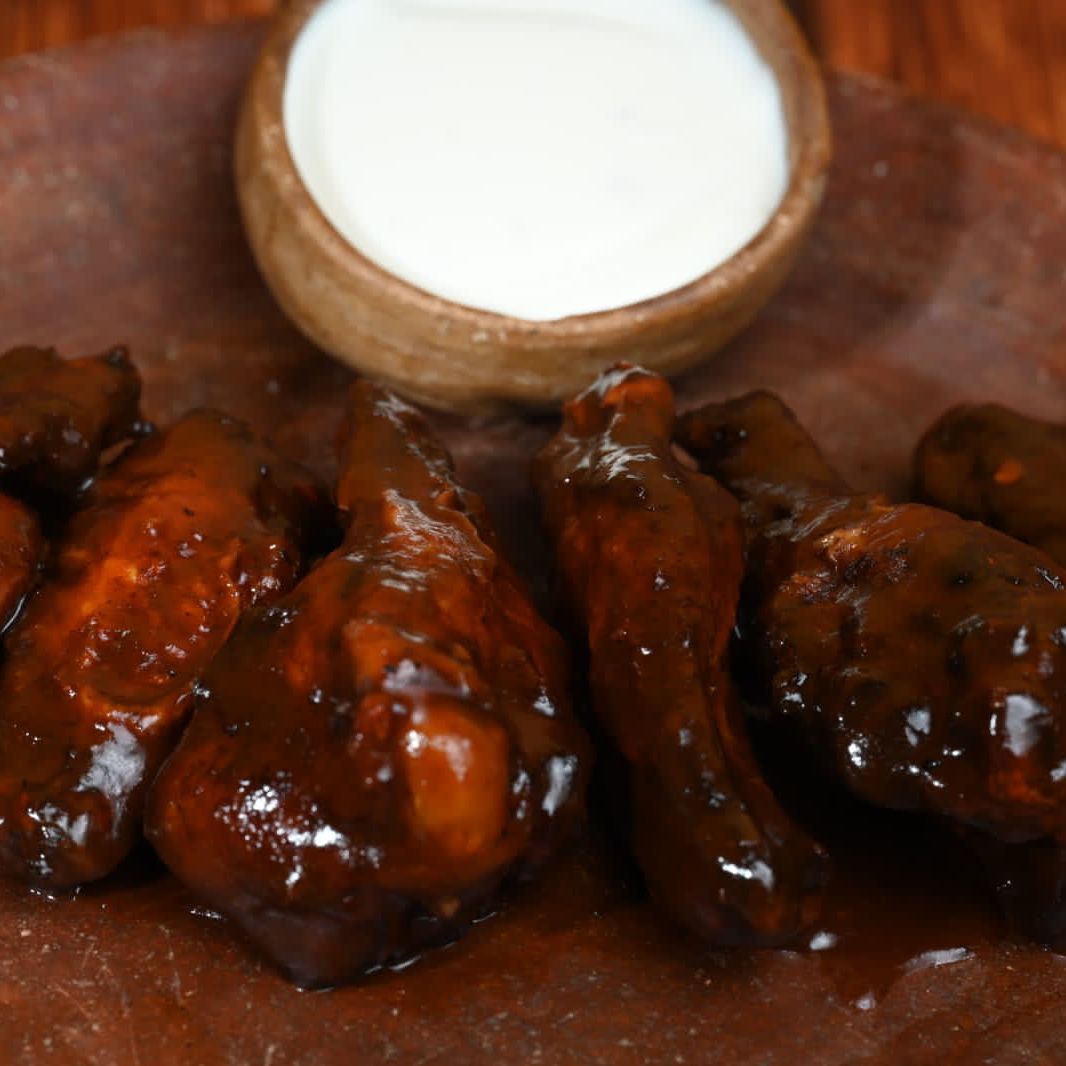 Órden de 6 pzas de ala de pollo, bañadas en 1 salsa, acompañado de aderezo rancho.