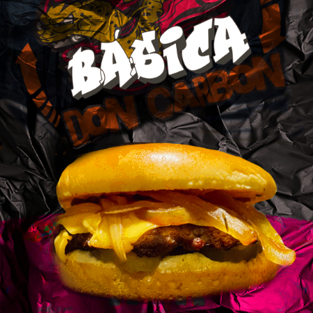 Carne de res, queso amarillo, pan tradicional,cebollitas DoncarboN y aderezos.