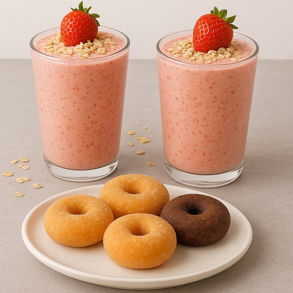 Leche deslactosada licuada con fresa y avena endulzado con mie0