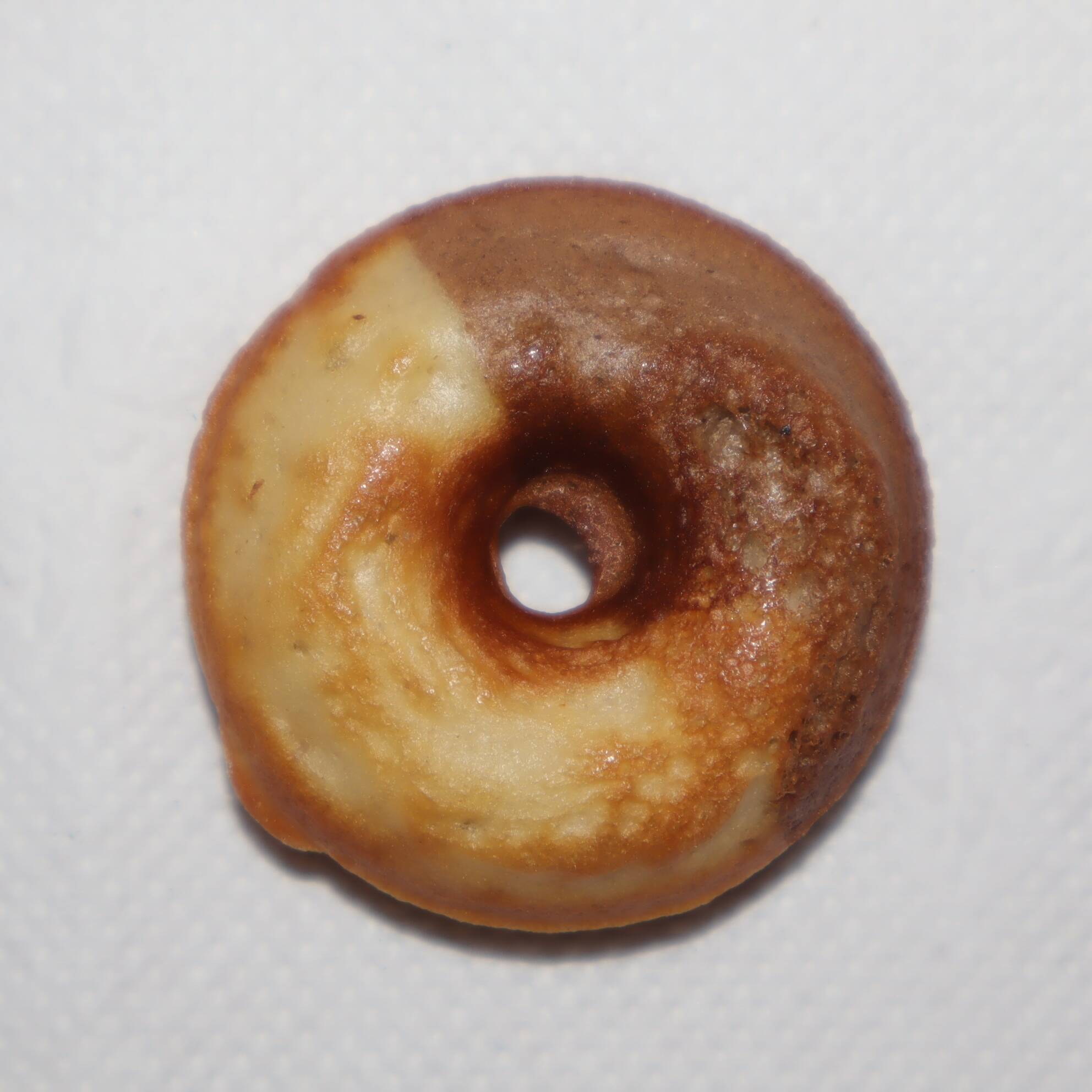 Dona de 5 cm sabor vainilla con cobertura de chocolate y glaseado blanco