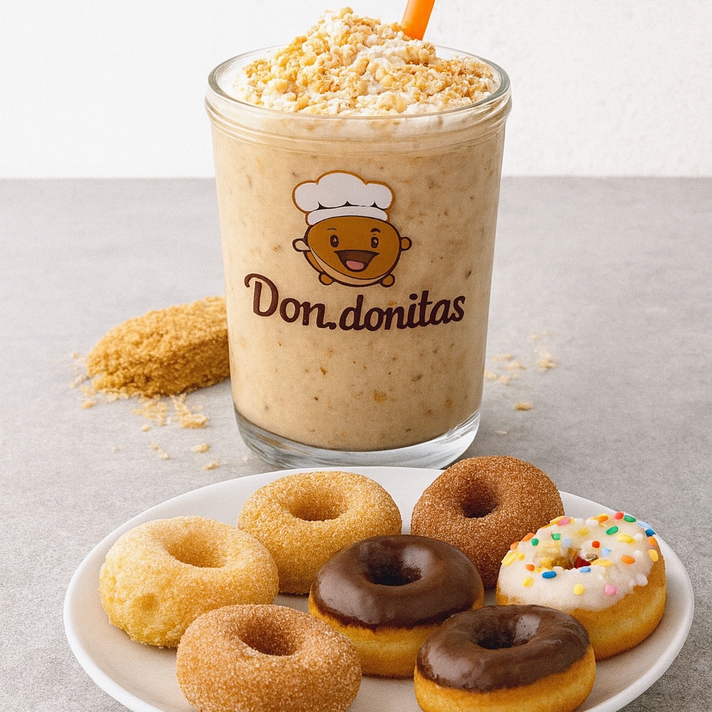 Dona Vainilla Cubierta De Chocolate*4 + Dona Coco-Vainilla*4 + Frappé Mazapan*2 + Dona Vainilla*4