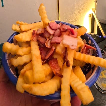 Papas fritas con opciones adicionales de queso o tocino.