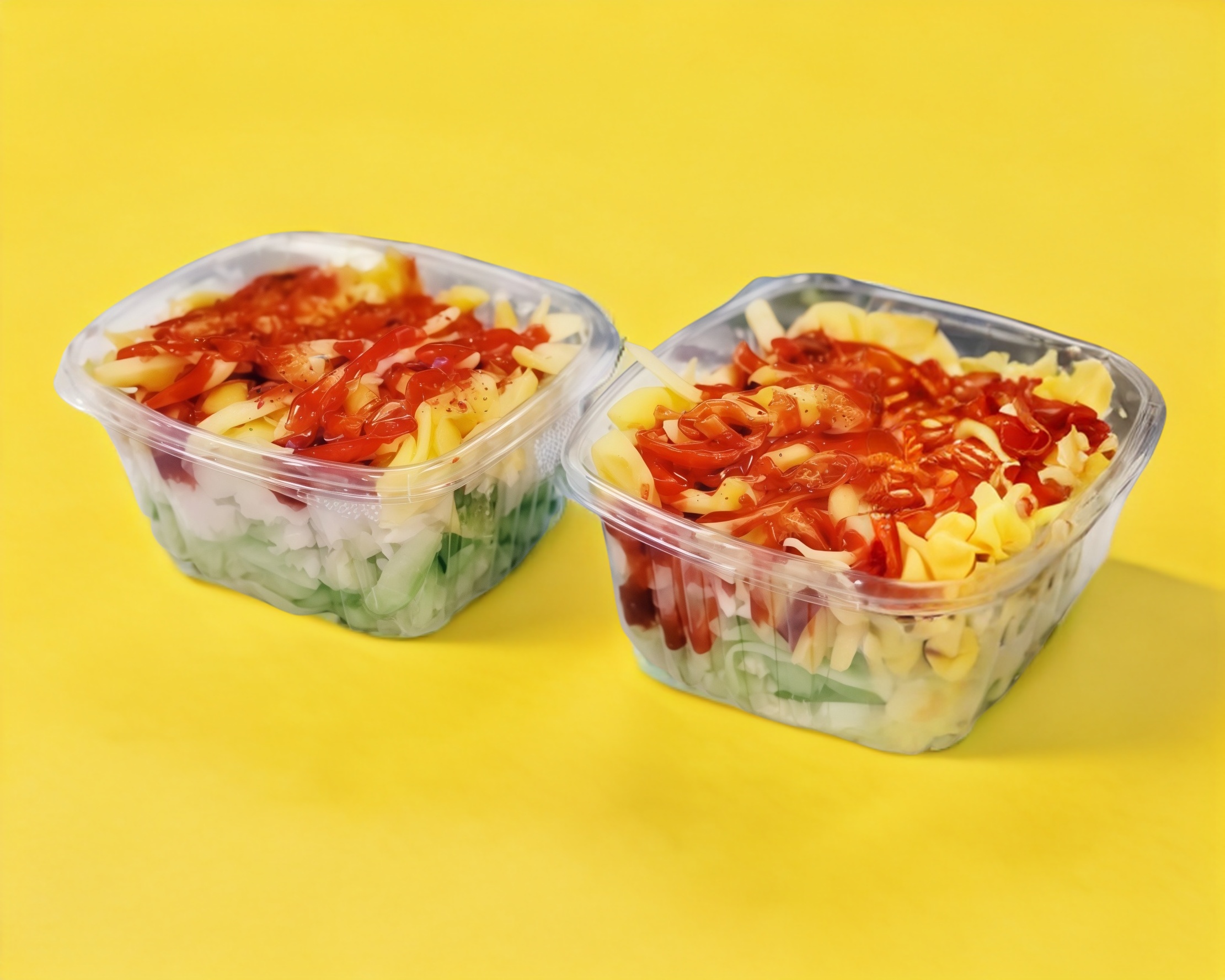 Jícama rallada, zanahoria rallada y pepino rallado.