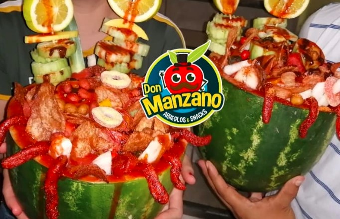 Chamoy, jugo maggi, concentrado de tamarindo, mix de frutas y botanas.