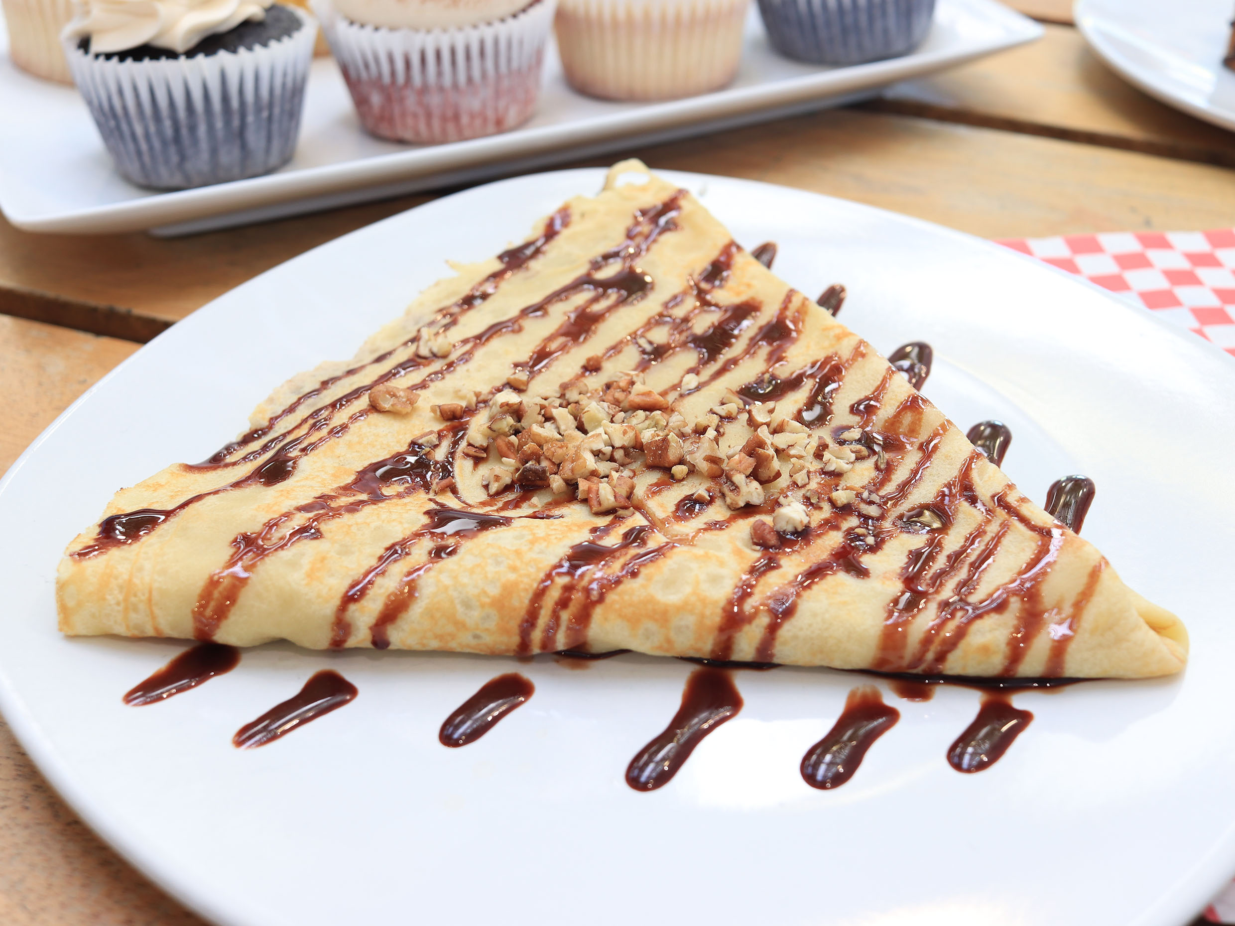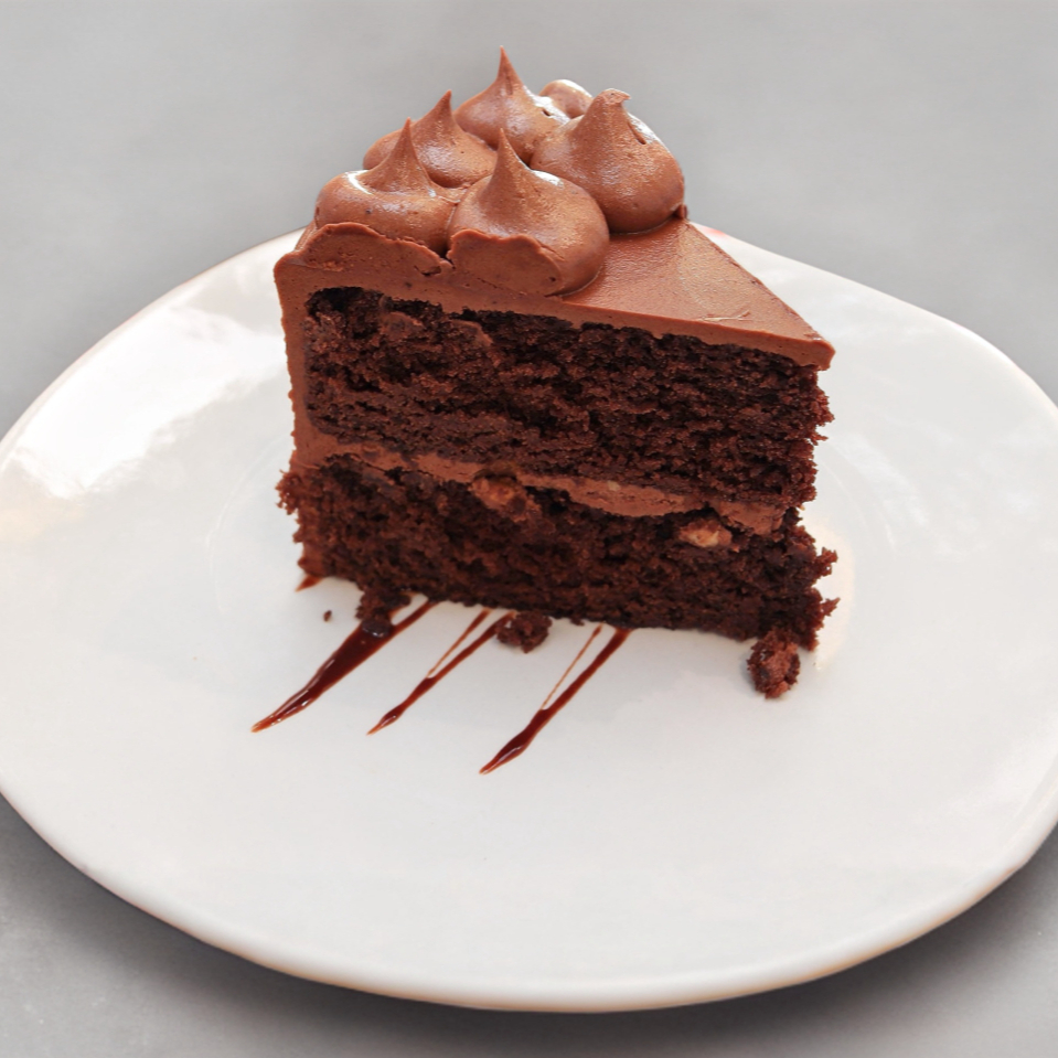 1 pórcion personal Rebanada Nutellacake contiene Bizcocho de chocolate, relleno de Nutella y cubierta con betún de nutella. 4.5 de base de la rebanada