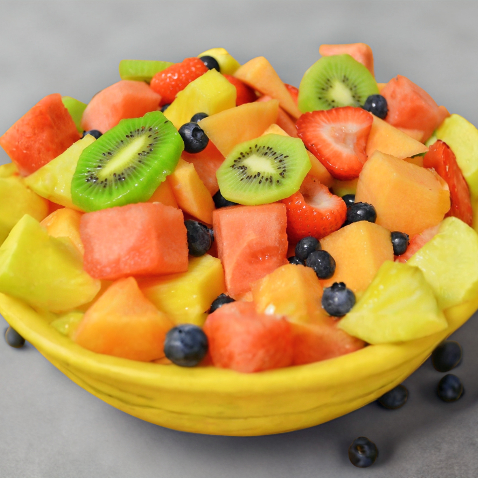 3 Piezas de pan francés acompañados con fresa, mora azul, plátano y salsa de frutos rojos.
