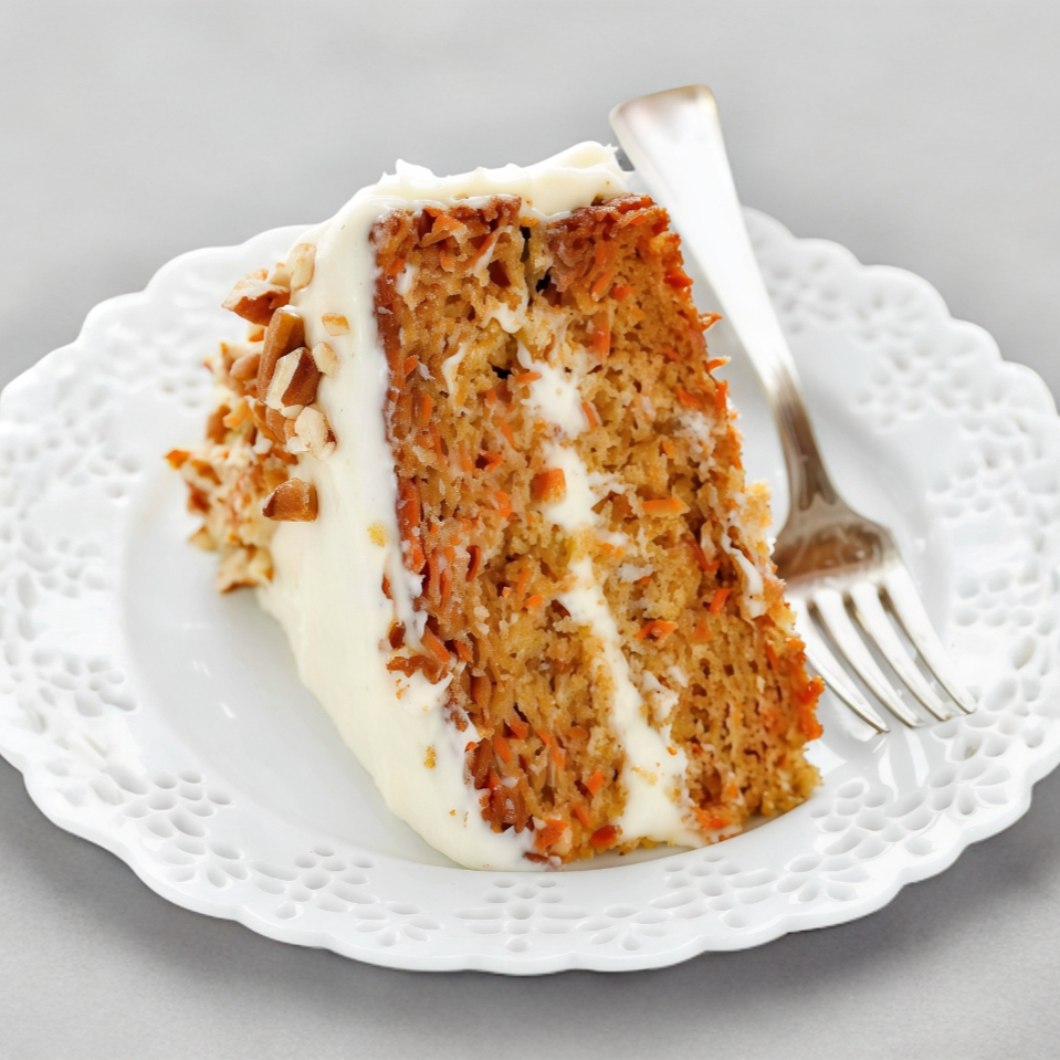 La cubierta es de betún de queso crema y pan acanelado con ralladura de zanahoria y nuez.
