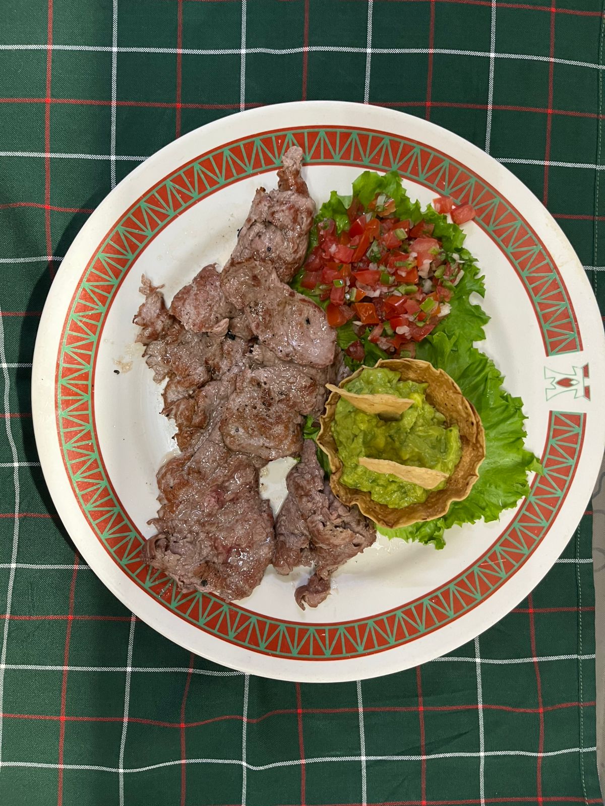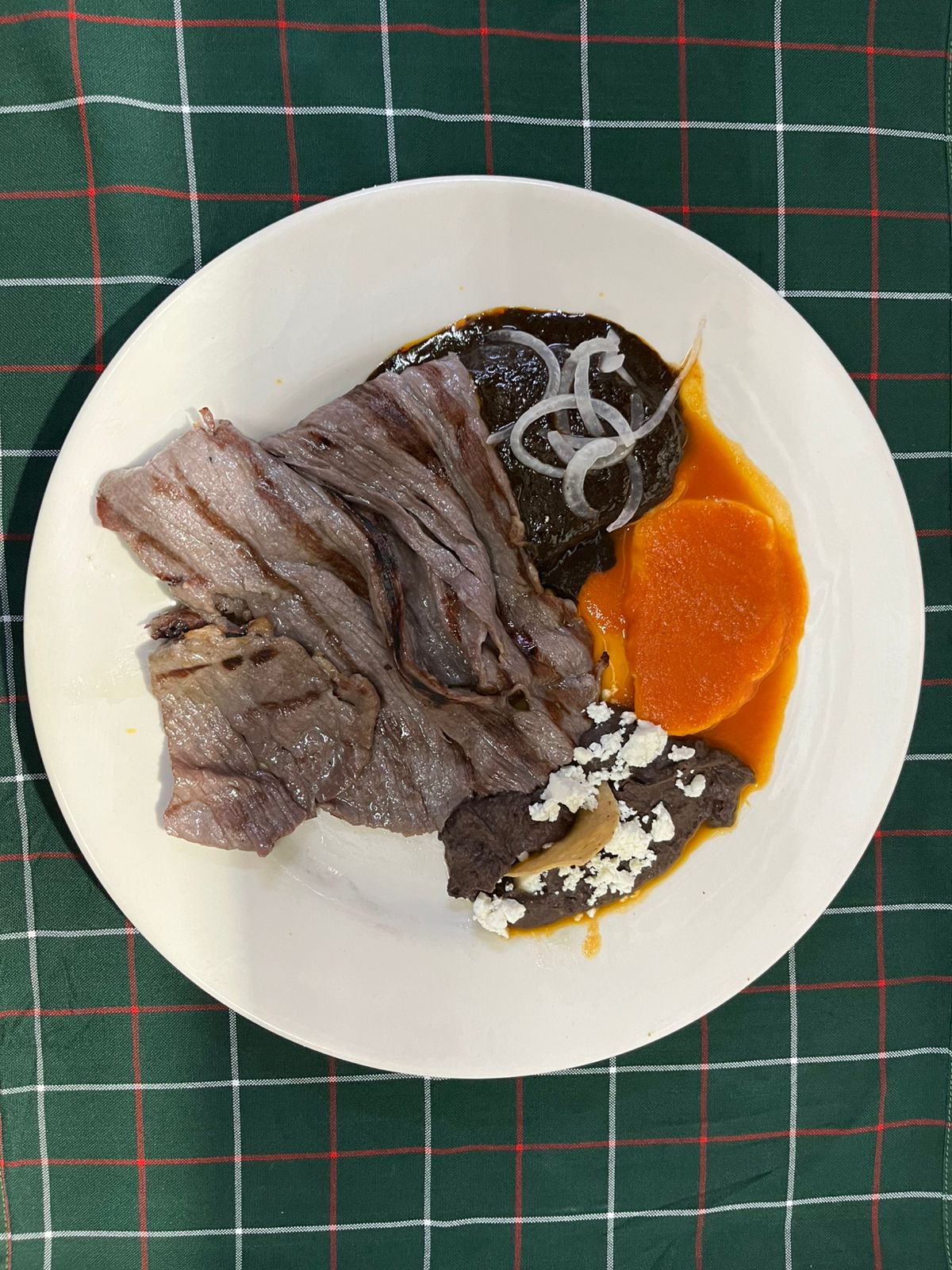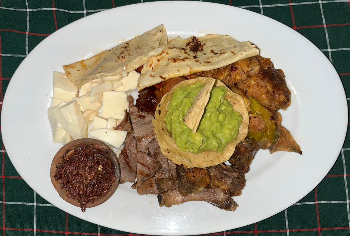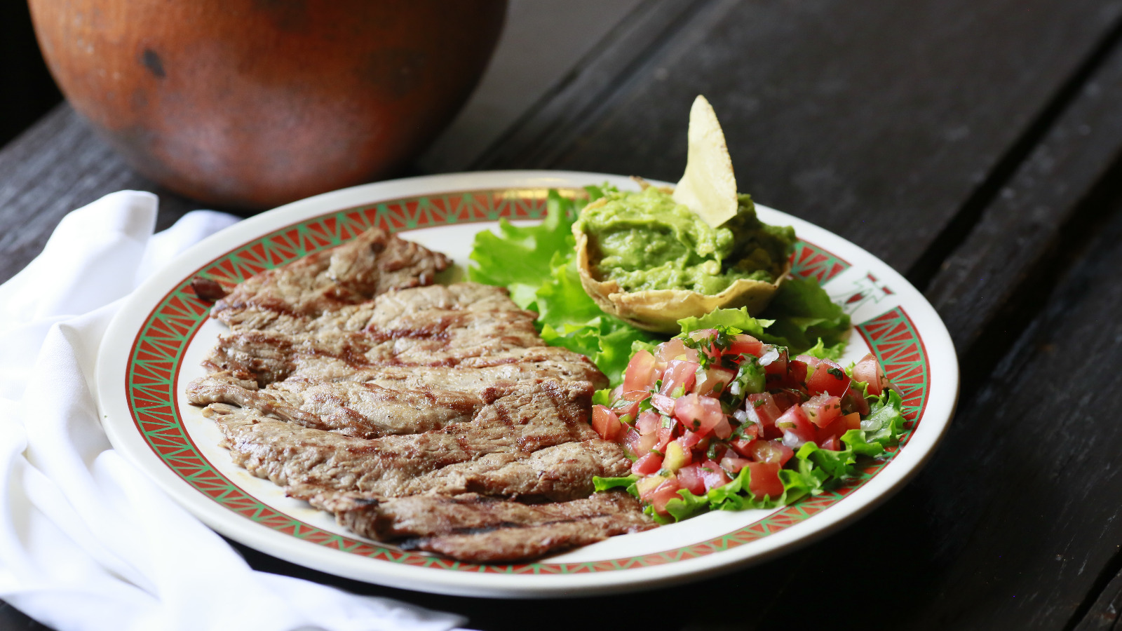 Acompañado de guacamole, cebolla cambray y chiles toreados.