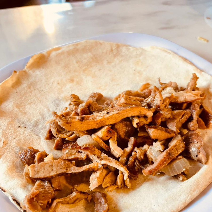 Taco con pan pita y carne.