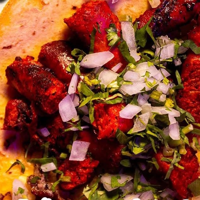 1/2 kg de carne de pastor. Se acompaña: 15 tortillas de maiz Verdura (cilantro y cebolla) Ensalada. Limones. Salsa.