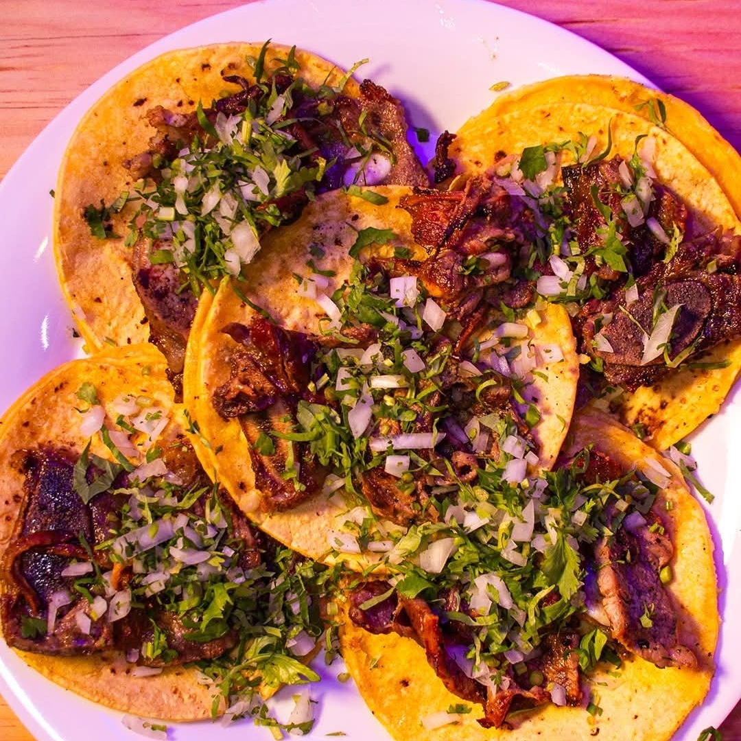 Platillo preparado con pastor, bistec y chuleta de cerdo. Se acompaña con nopal y cebollita asada, chile toreado y 10 tortillas de maíz.