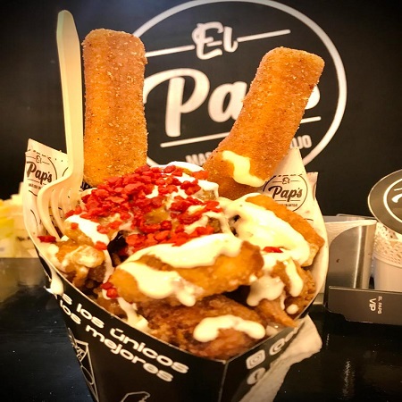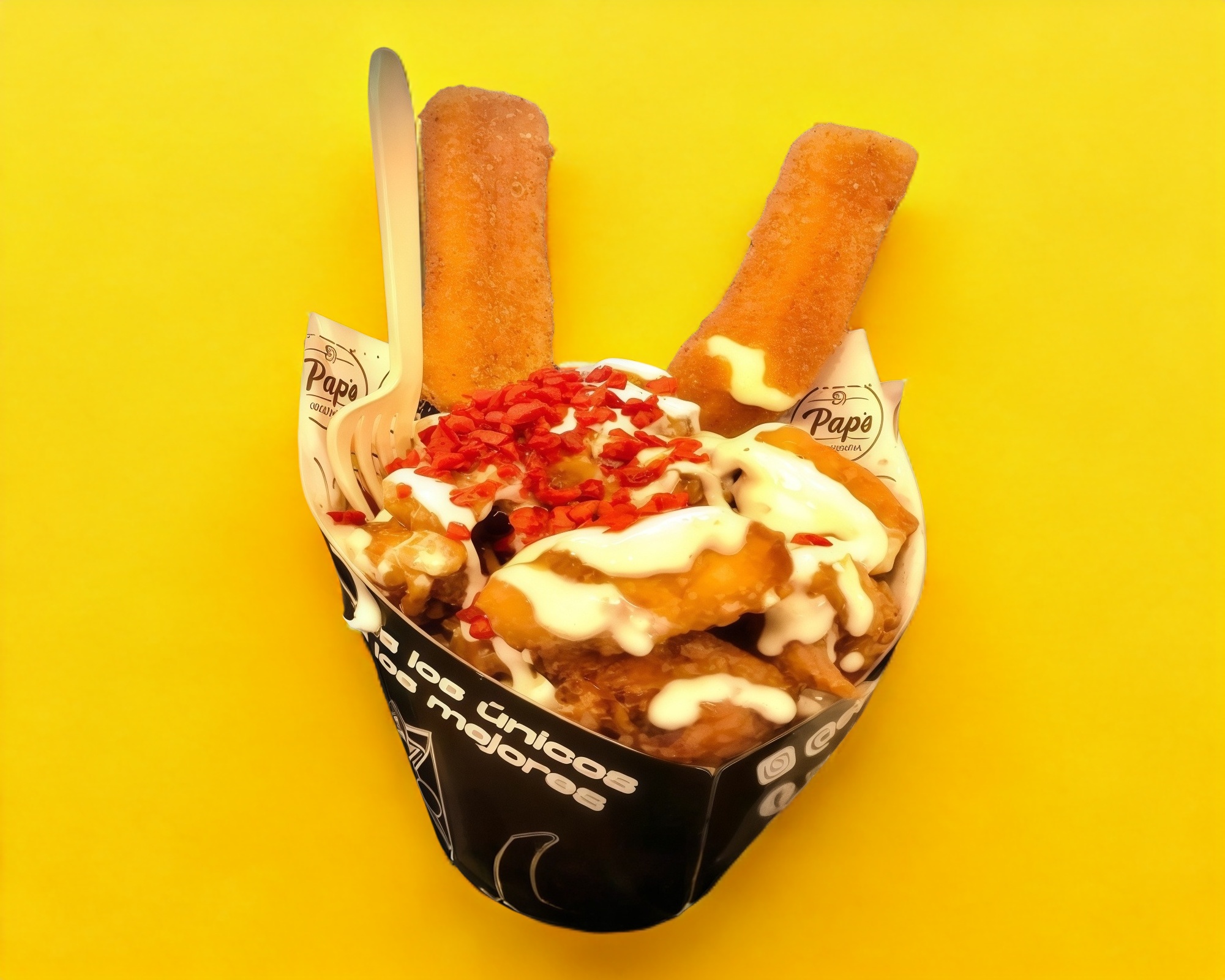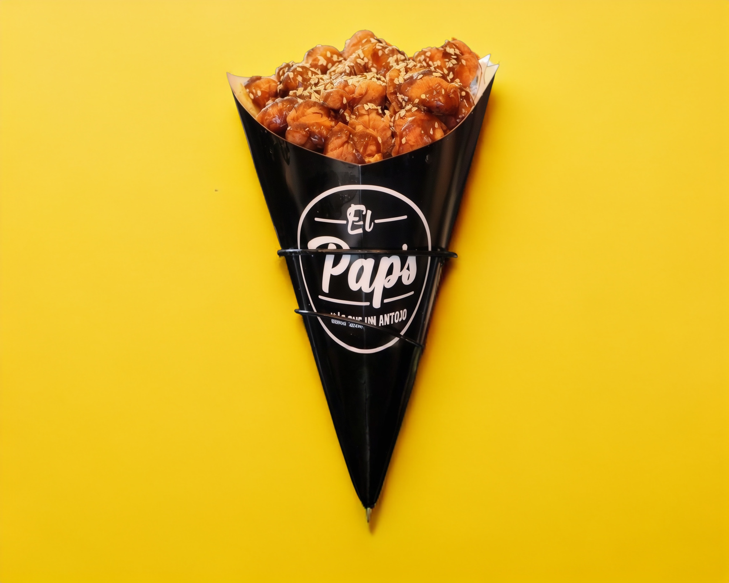 Un cono lleno de papas fritas.