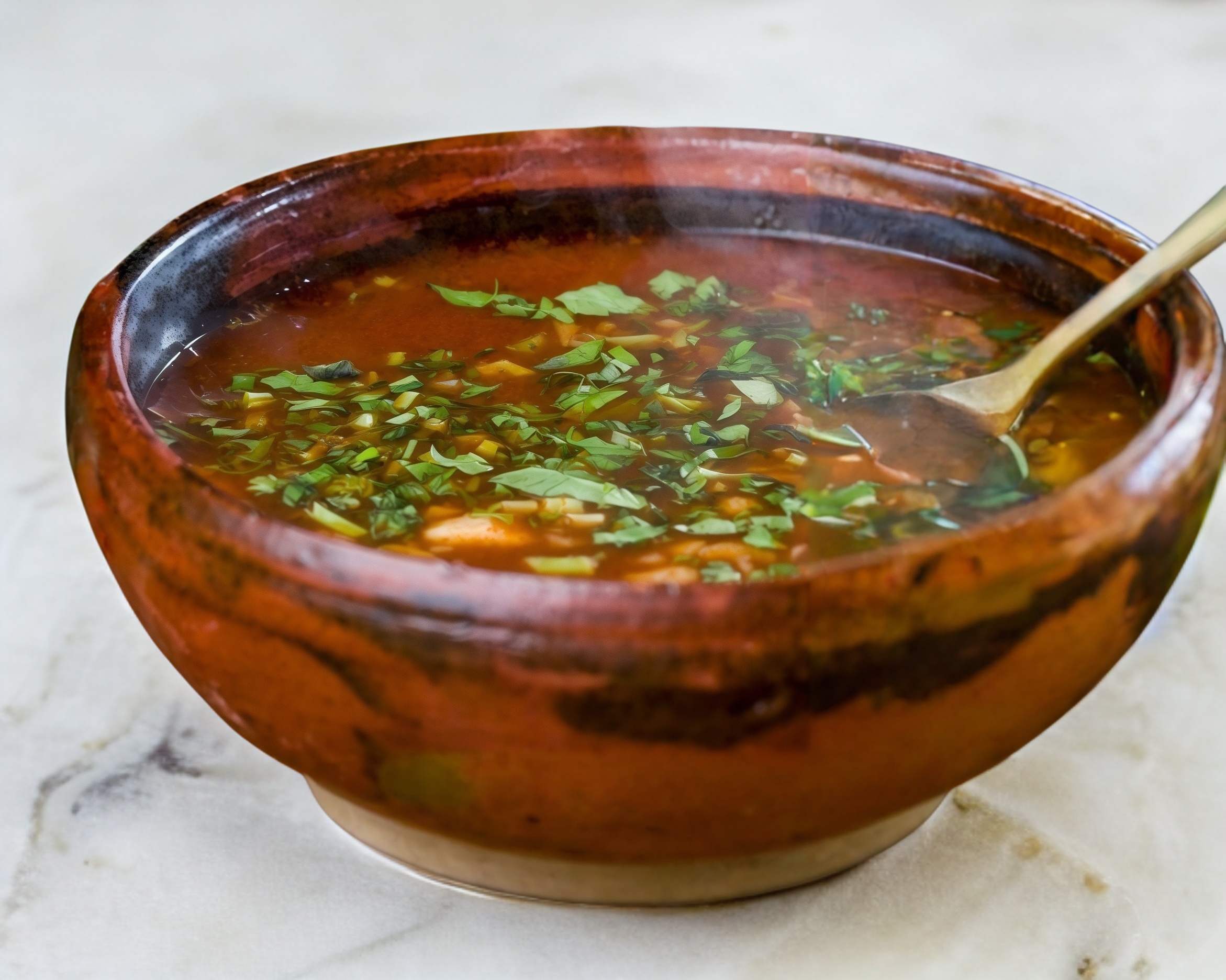 Consomé sin carne de 10oz, (295ml) incluye cebolla, cilantro, limón y salsas.