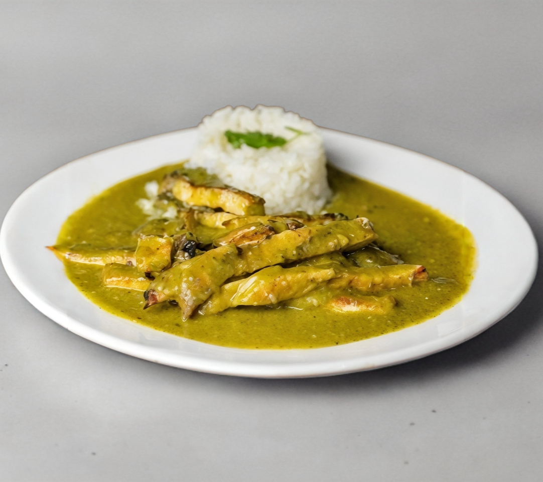 Comida completa, plato fuerte fajitas de pollo en salsa verde. Entrada, guarnicion y postre a elegir, cada menu se acompaña de tortillas hechas a mano y agua fresca natural