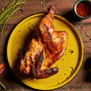 Pollo Entero condimentado y marinado, acompañado con tortillas, Arroz Blanco 1 Chile Serrano y salsa picante
