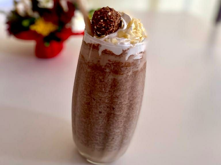 DELICIOSO FRAPPE DE FERRERO CORONADO CON UN CHOCOLATE FERREO Y ALMENDRA TOSTADA