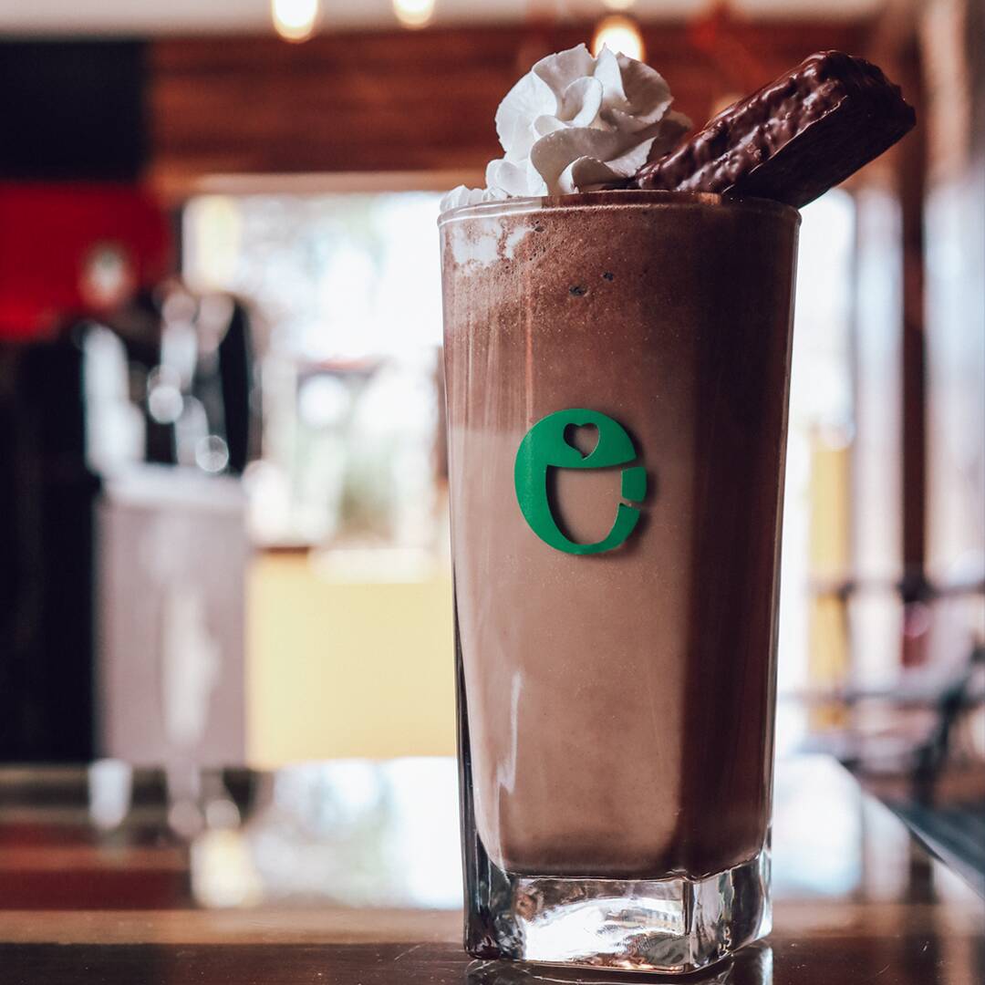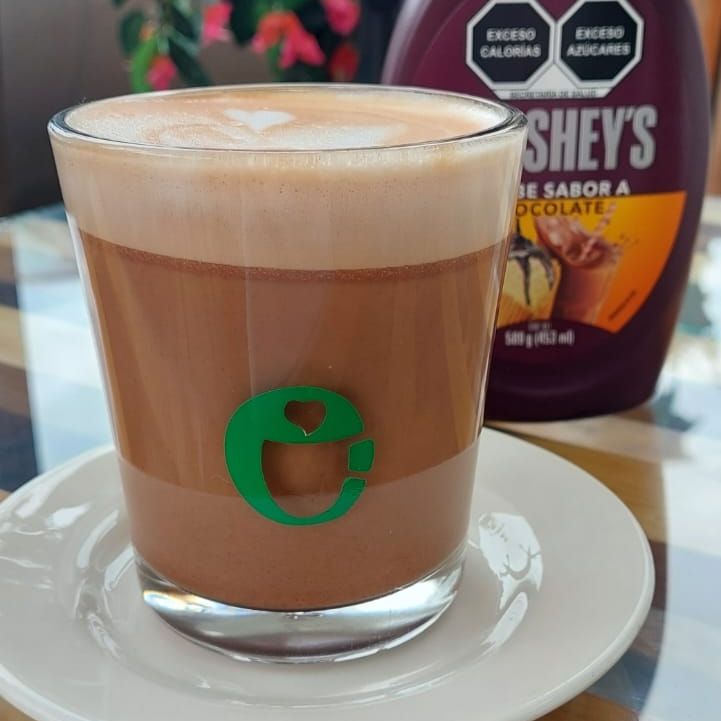 14 onzas. Leche fría, chocolate y una carga de expreso servido sobre hielos.