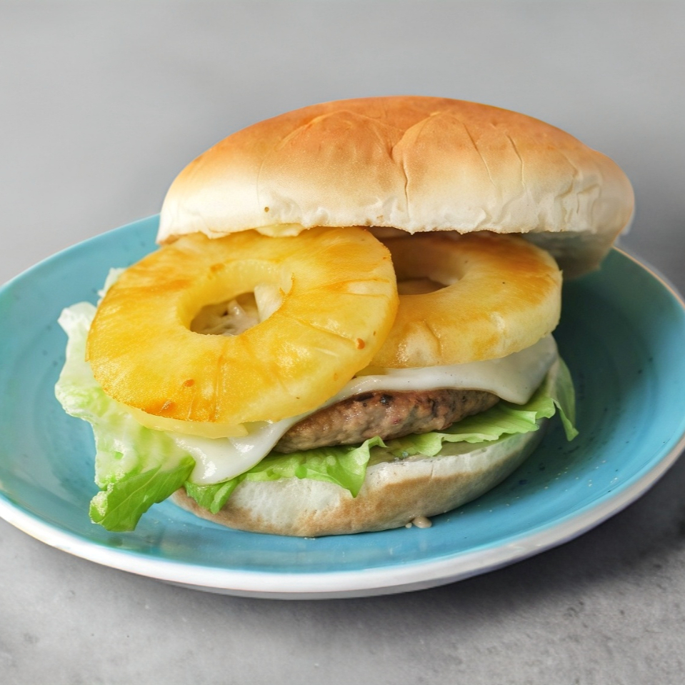 Piña, quesillo, jamón, pan grande, incluye papas.