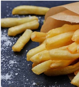 Papas fritas gruesas y crujientes, perfectas para compartir.