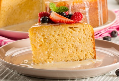 Pastel tradicional de tres leches, suave y dulce.