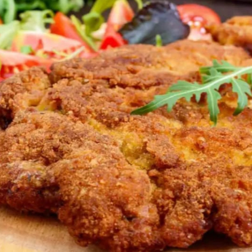 Filete de carne empanizado y crujiente.
