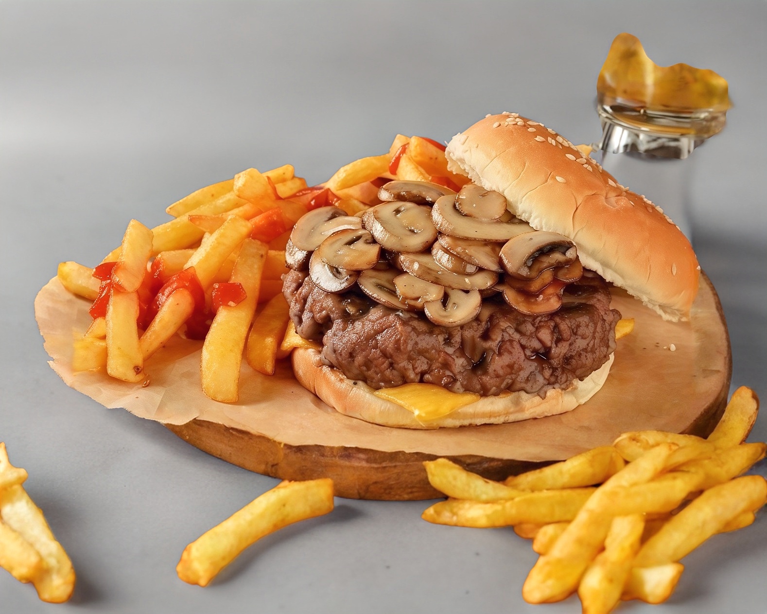 Champiñones (carne, jamón, queso amarillo, quesillo, champiñones guisados con cebolla, cebolla picada, tomate, chile, lechuga y aderezos). Doble carne de champiñones (dos porciones de carne, jamón, quesillo, queso amarillo, champiñones guisados con cebolla, cebolla, tomate, chile lechuga y aderezos).