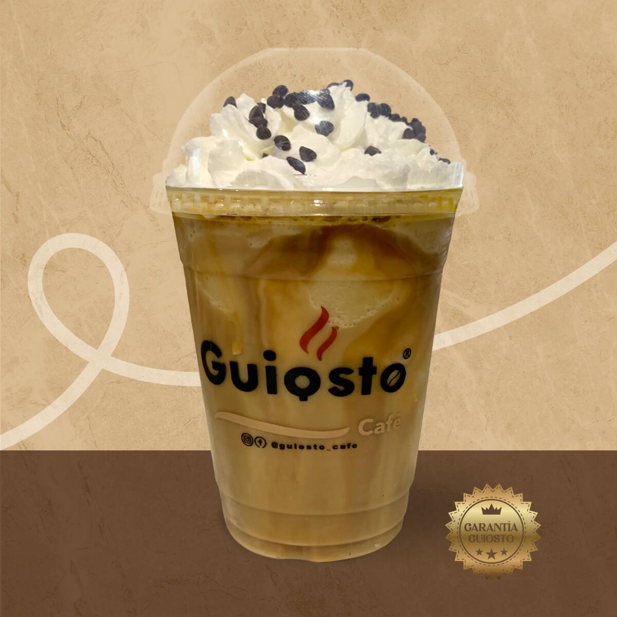 Frappé con sabor a espresso de café y caramelo, combinación dulce y deliciosa.