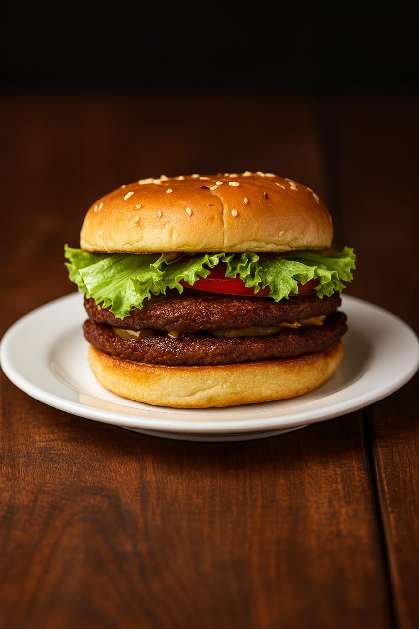 Hamburguesa de doble carne de res, con jamón, quesillo y queso amarillo.