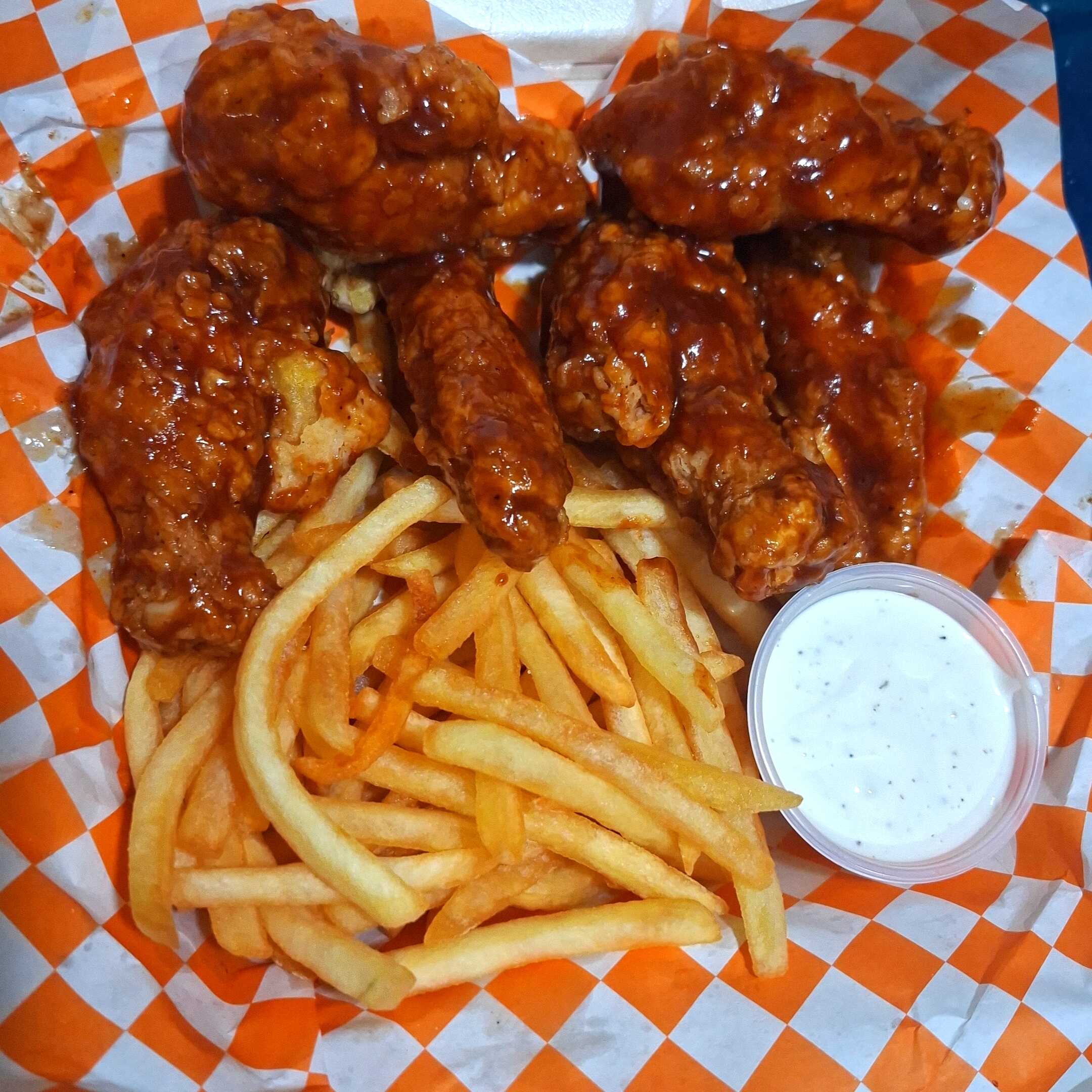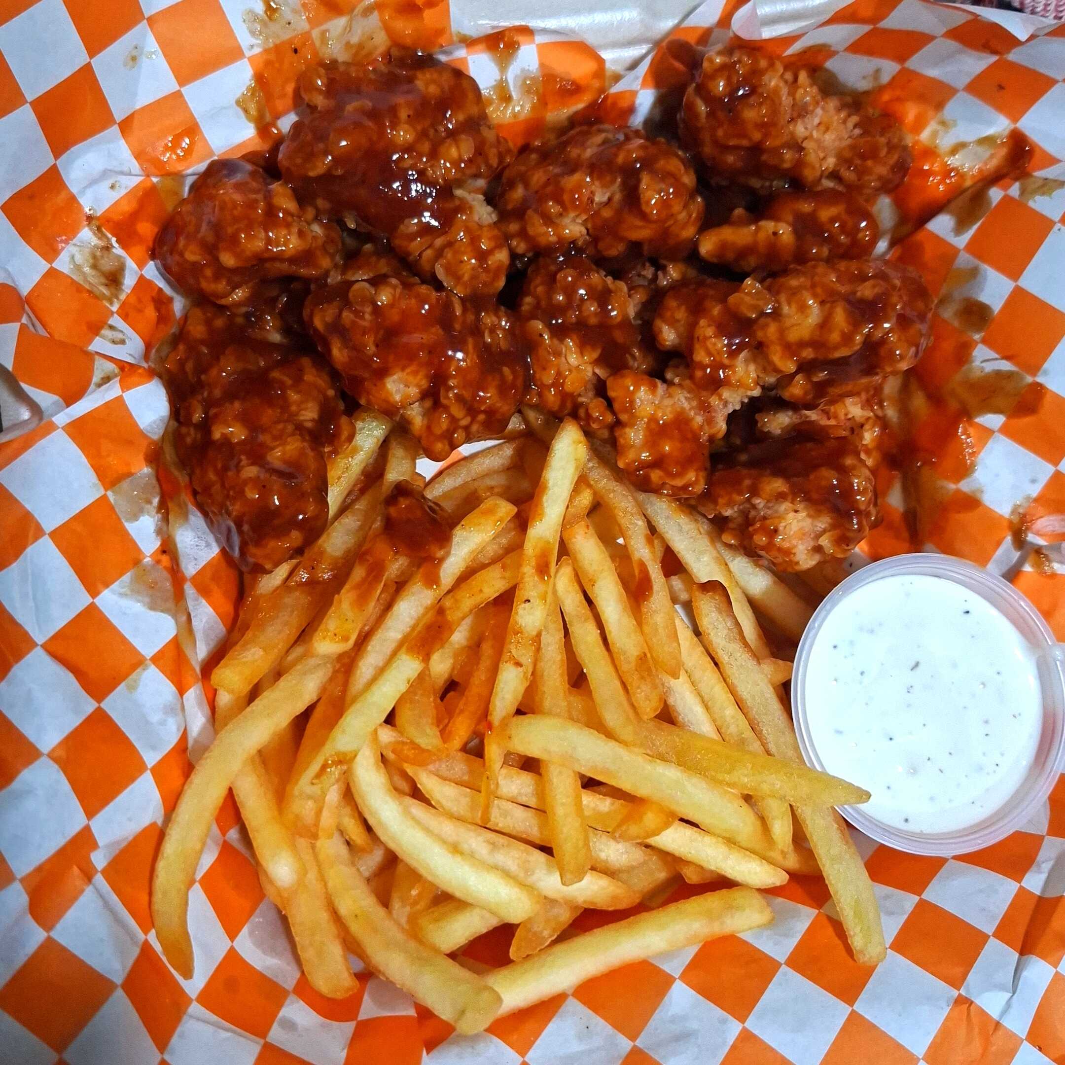 Boneles, papas, aderezo ranch