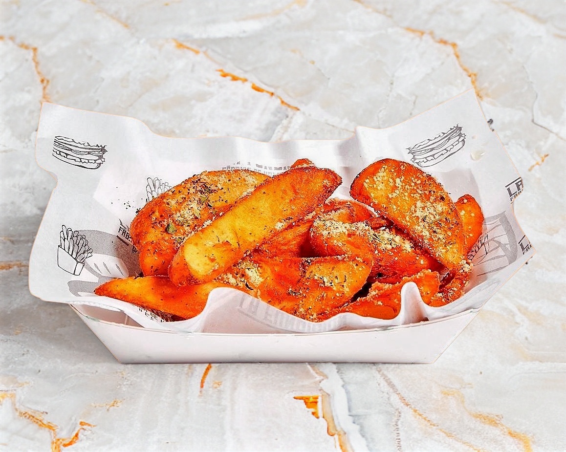 Papas gajo sazonadas con nuestra mezcla especial de ajo parmesano