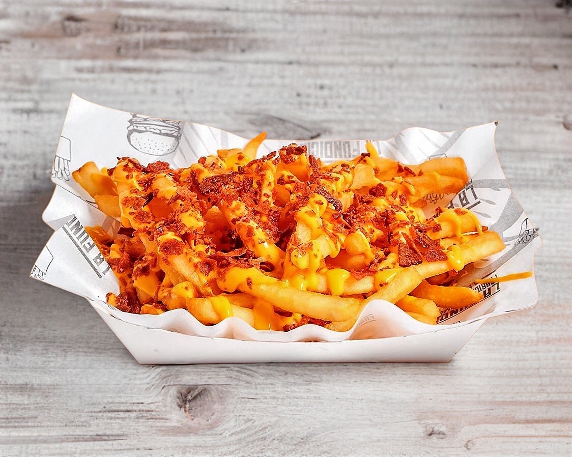 Deliciosas papas fritas con queso y tocino