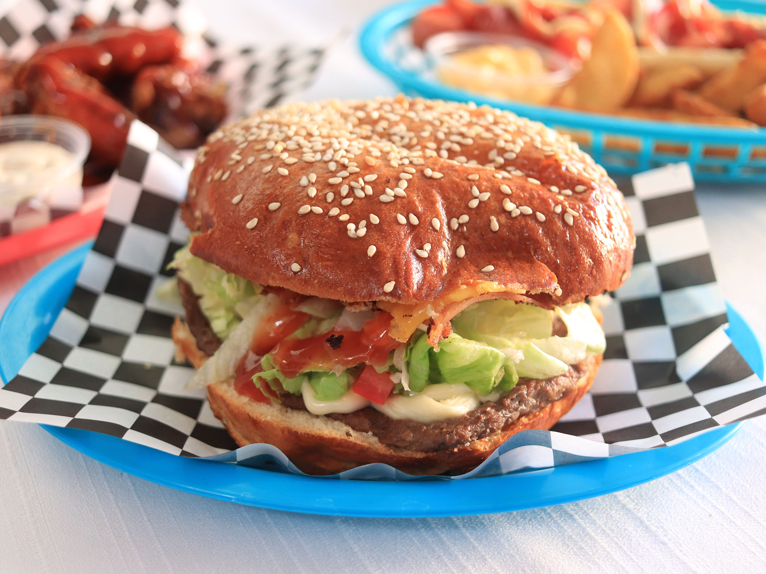 Pan parrillero Bimbo carne de res jamón quesomanchego queso amarillo mayonesa mostaza catsup tomate cebolla pepinillos y lechuga