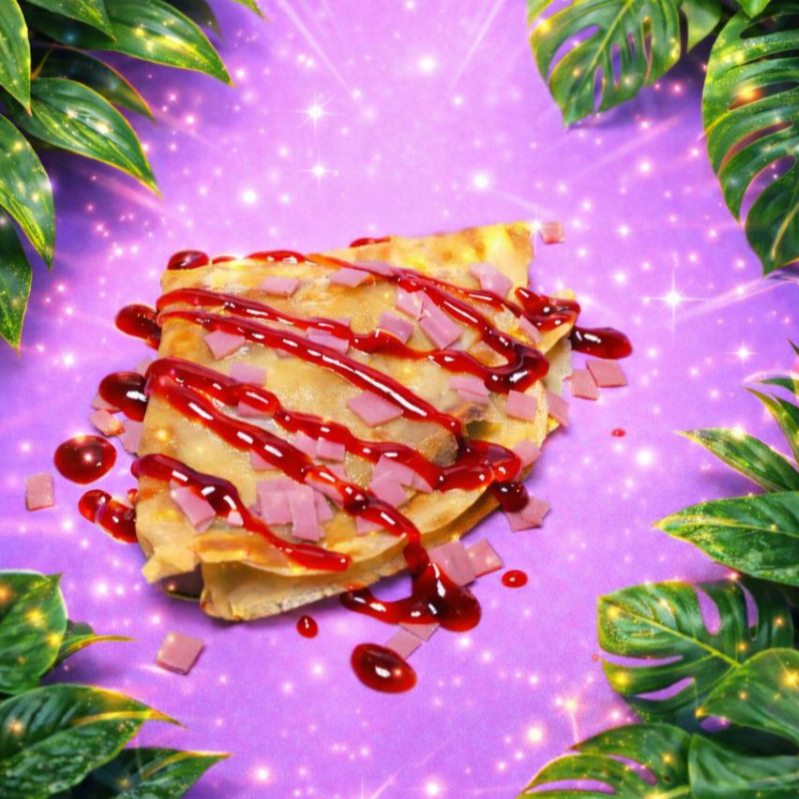 Crepa con toping de fresa, crema batida, nutella y queso crema