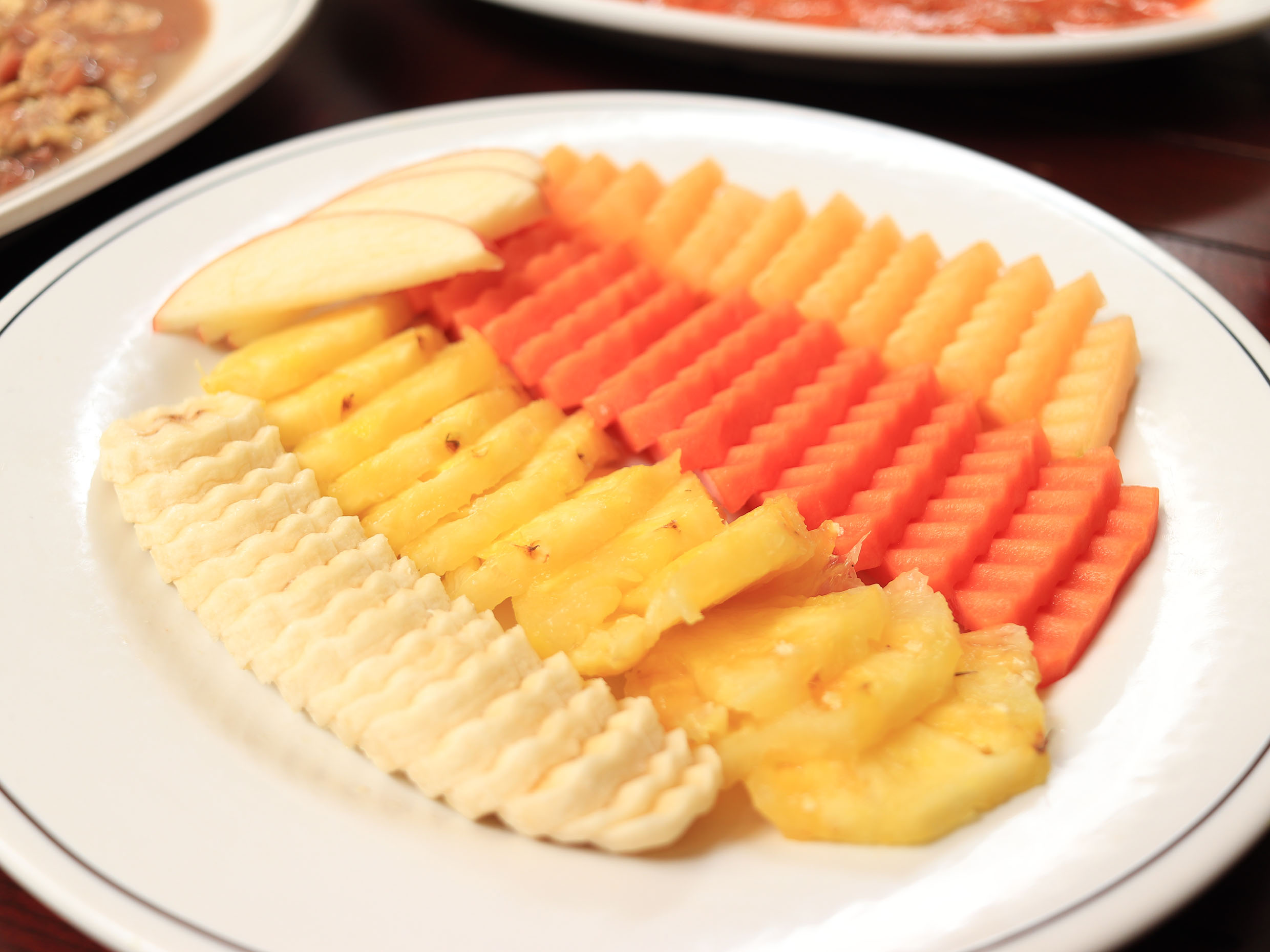 Rebanadas de plátano, papaya, melón o piña bañadas en yogurt natural.
