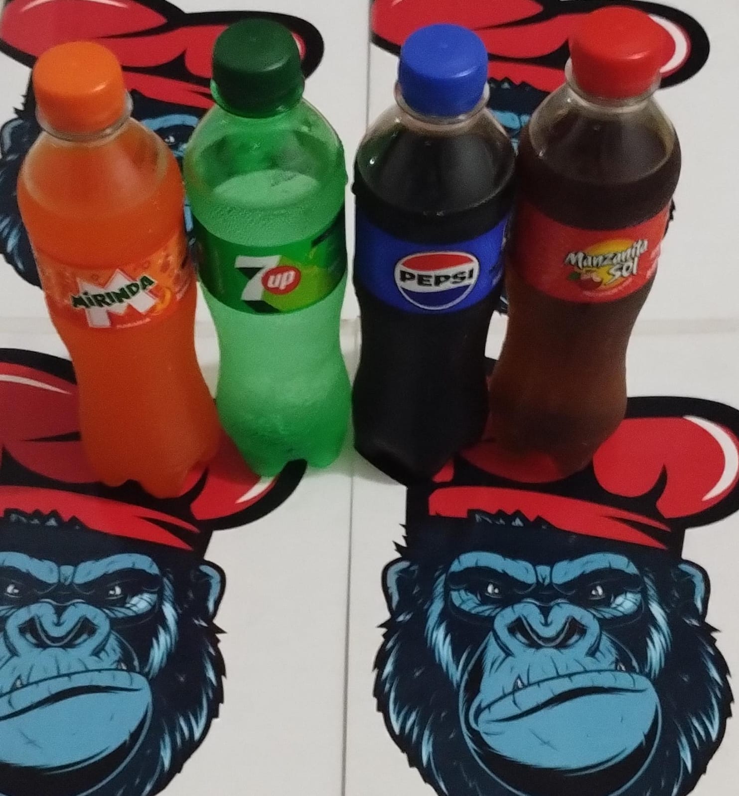 Refresco desechable de 400 ml, sabores disponibles Pepsi, mirinda, manzanita y 7Up.