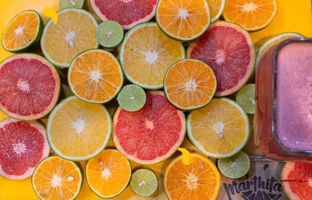 Naranja, piña, guayaba, miel,limon y jengibre.