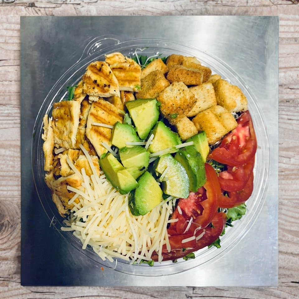 Mix de Lechugas, Germinado, Pechuga a la Plancha, Crutones, Tomate, Aguacate Y Parmesano.