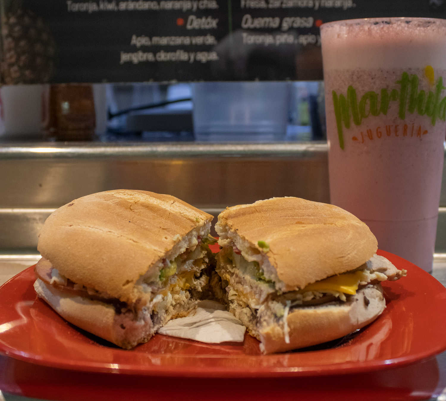 Pan telera, pasta de frijol, tomate, aguacate, jalapeños y el ingrediente de tu elección.