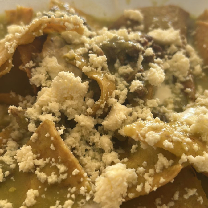 Salsa azteca, totopos, queso.aguacate, chicharron