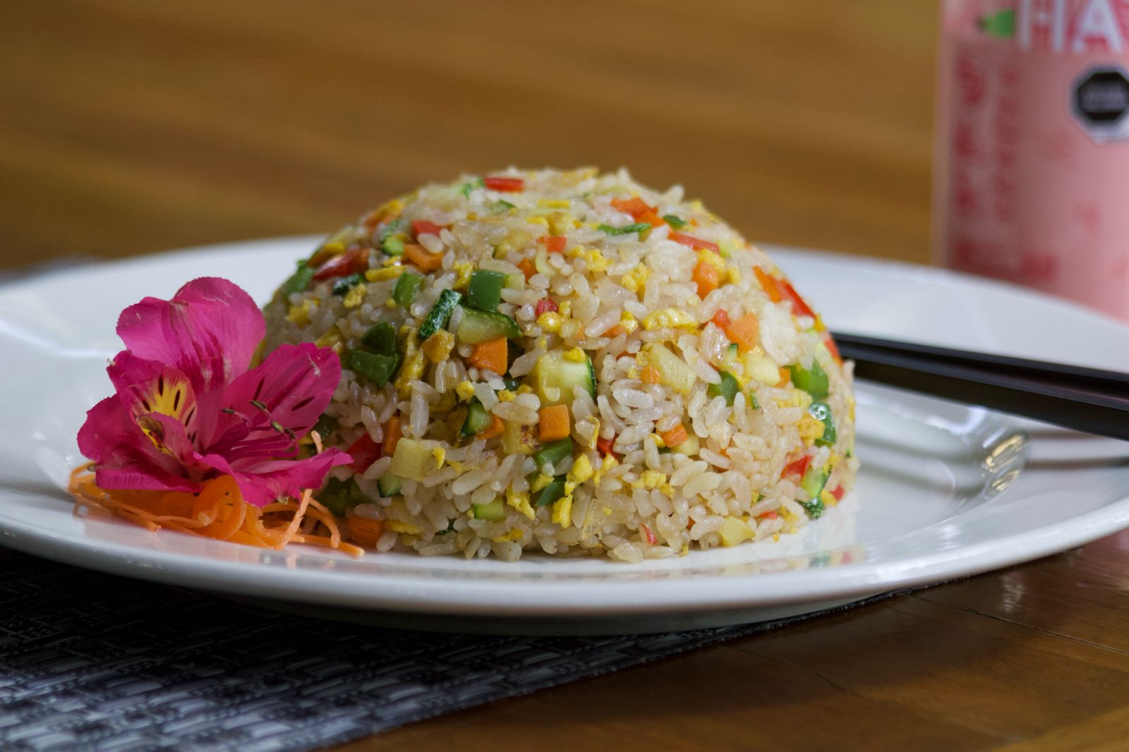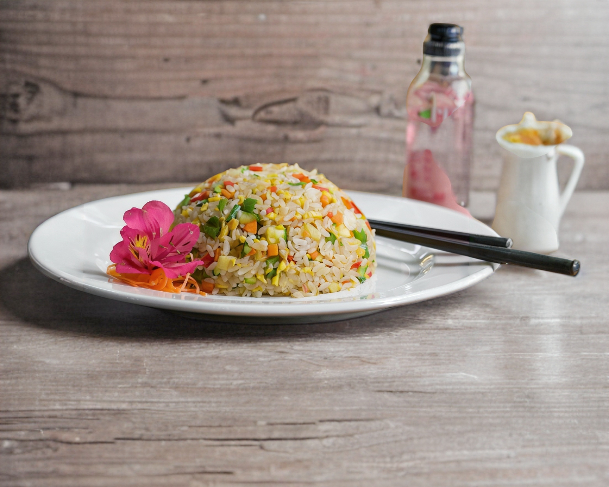 ARROZ FRITO, HUEVO Y VEGETALES, CALABAZA, PIMIENTO , CEBOLLA Y ZANAHORIA .