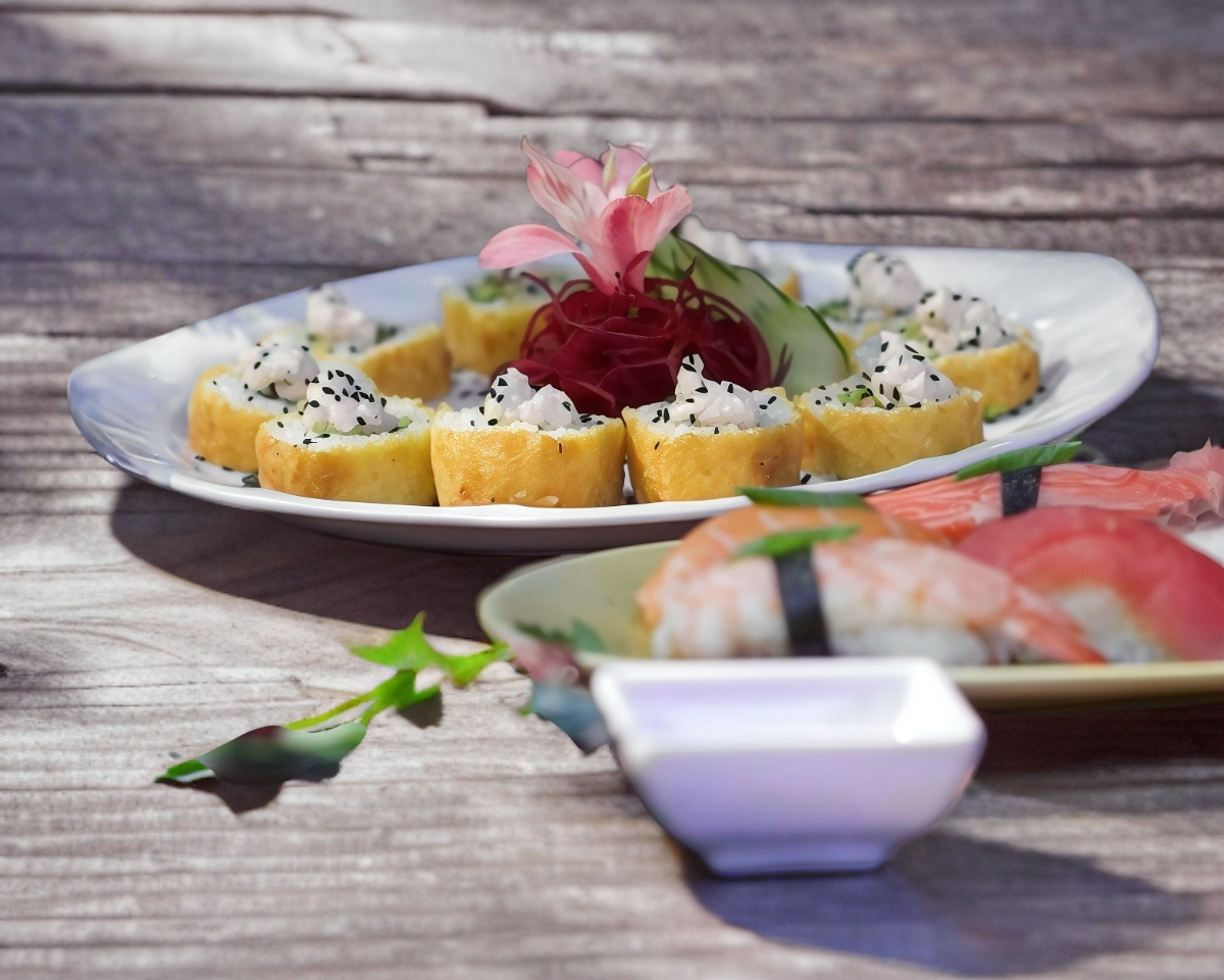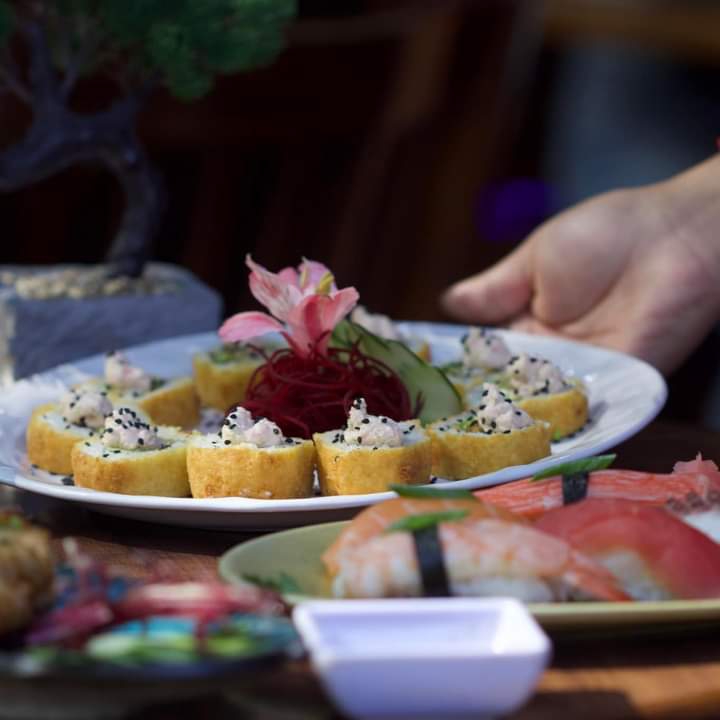 XD: camarón tempura, aguacate, cangrejo y pepino y XF: tempura crunch, salsa de anguila y sals spicy.