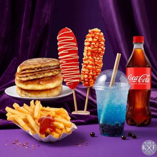 2 Banderillas*1 + Soda Explosiva*1 + Coca-Cola 355 ml*1 + Hotteok*1 + Papas a la Francesa*1