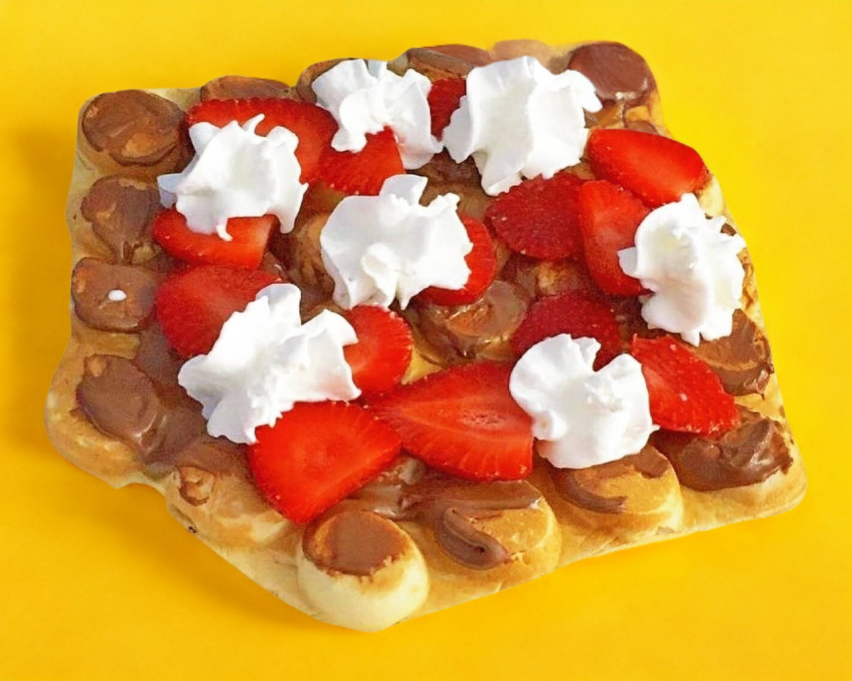 Regular: Con fruta o helado y 3 toppings. Nutella y crema batida.