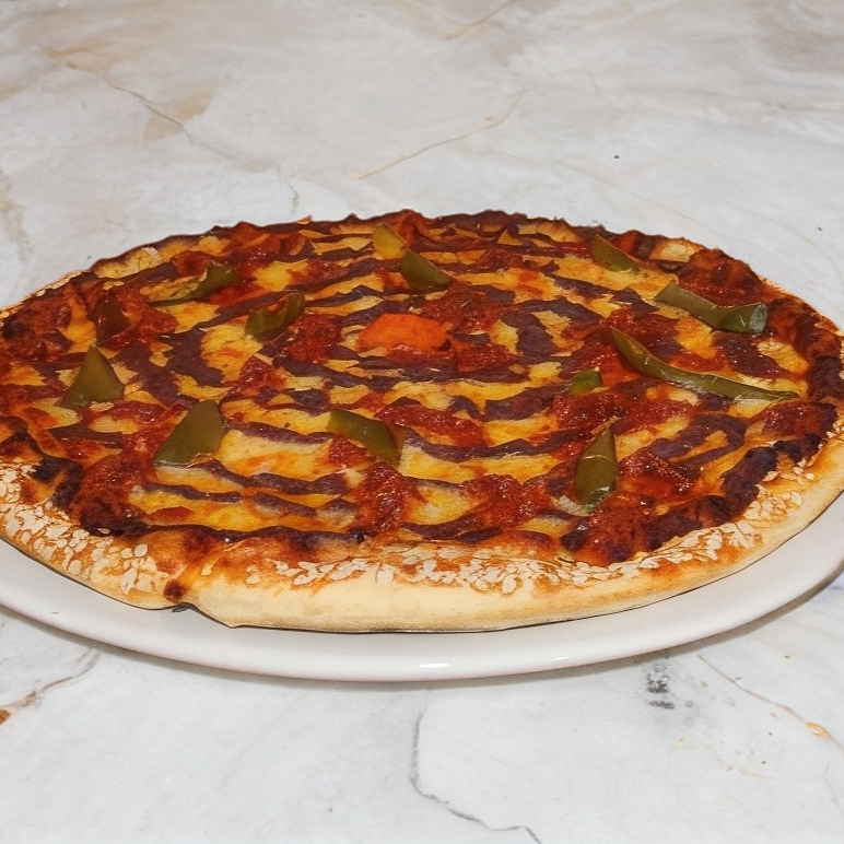 Clásica: pollo, tomate, champiñones, cebolla, jalapeño y queso.