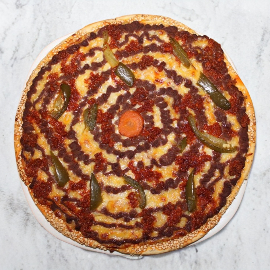 4 Estaciones: jamón, salami, champiñones, pimiento y queso.