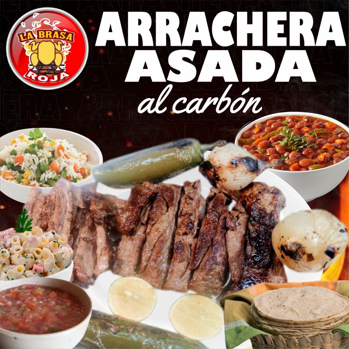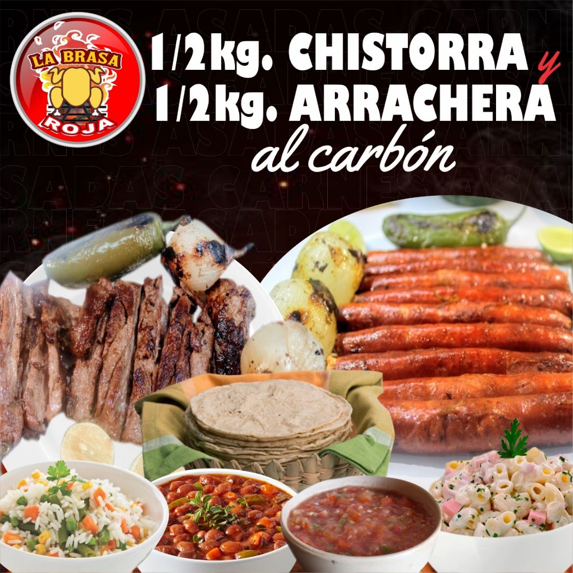 1/2 Pollo Asado+1/2 Kg de arrachera+COMPLEMENTOS