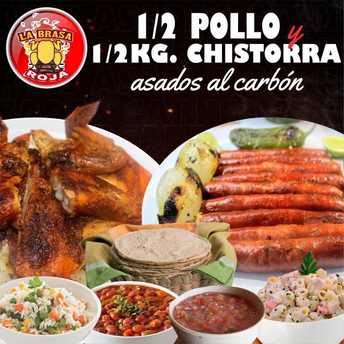 1/2 Pollo Asado..*1 + 1/2 Kg de Chistorra Asada al Carbón..*1