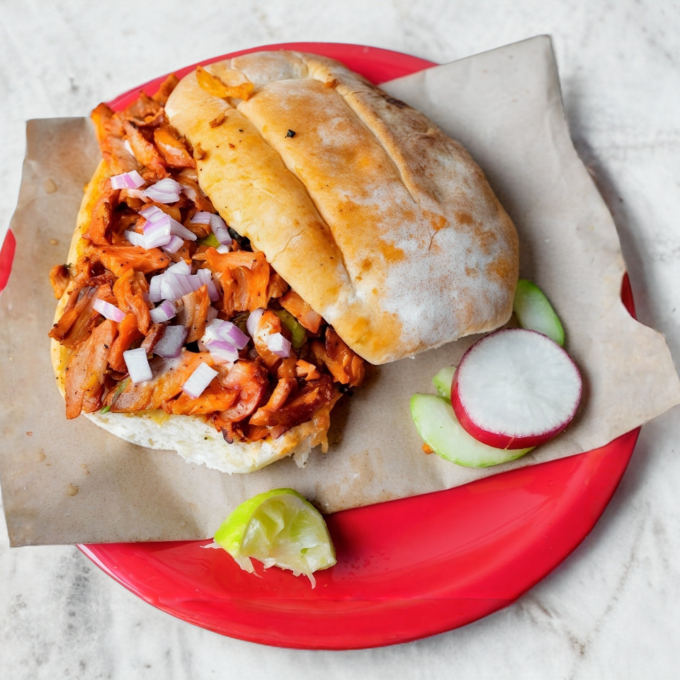 carne, cebolla caramelizada, guacamole ranchero y aderezo de chipotle)